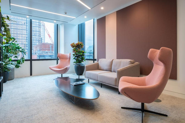 One of the standout areas within the new headquarters is the 8th floor Sky Lounge. Fluid furnished the space with carefully selected pieces to complement its panoramic views across London, creating a destination space for informal meetings and team gatherings. The rooftop terrace was also fitted with robust and stylish outdoor furniture, extending the usable workspace and offering employees an outdoor setting for collaboration and relaxation.