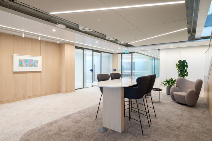 Collaborative and breakout furniture was introduced across the workspace to support informal interaction and flexible working styles, helping teams move easily between focused work and group discussion throughout the day.
